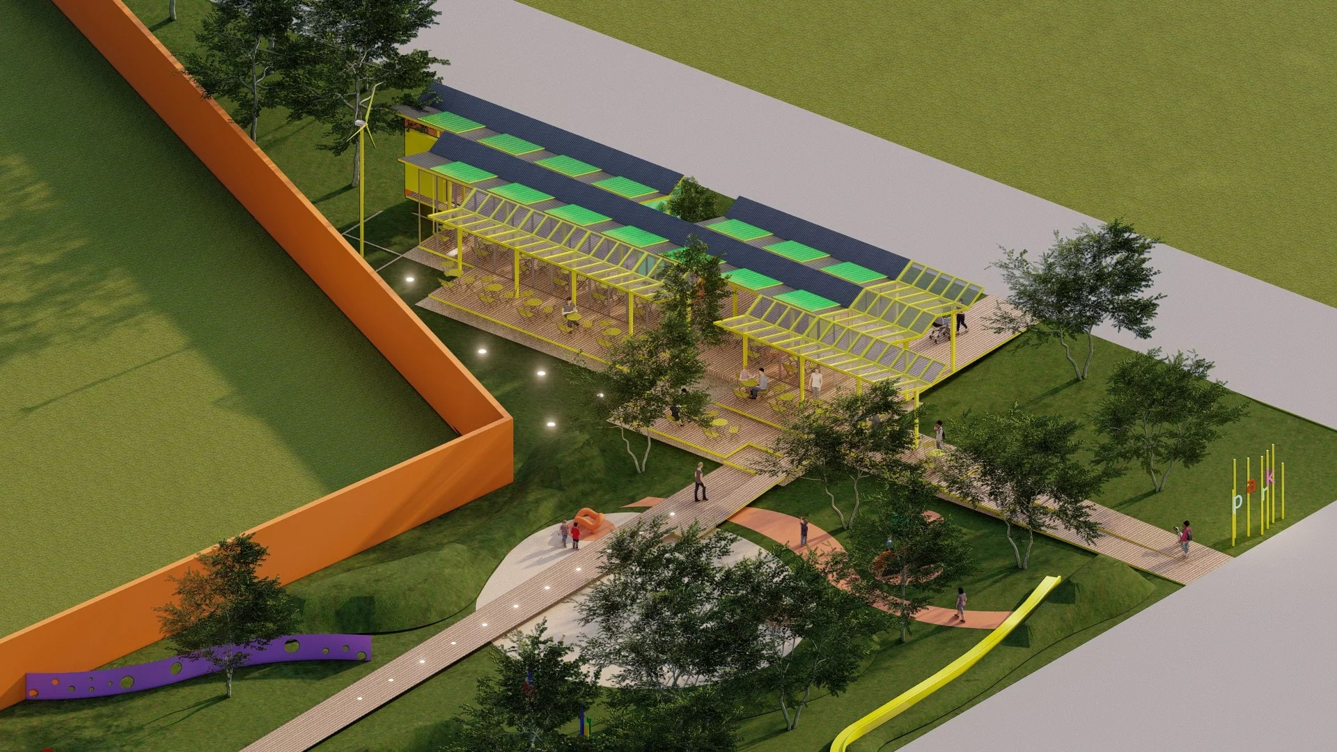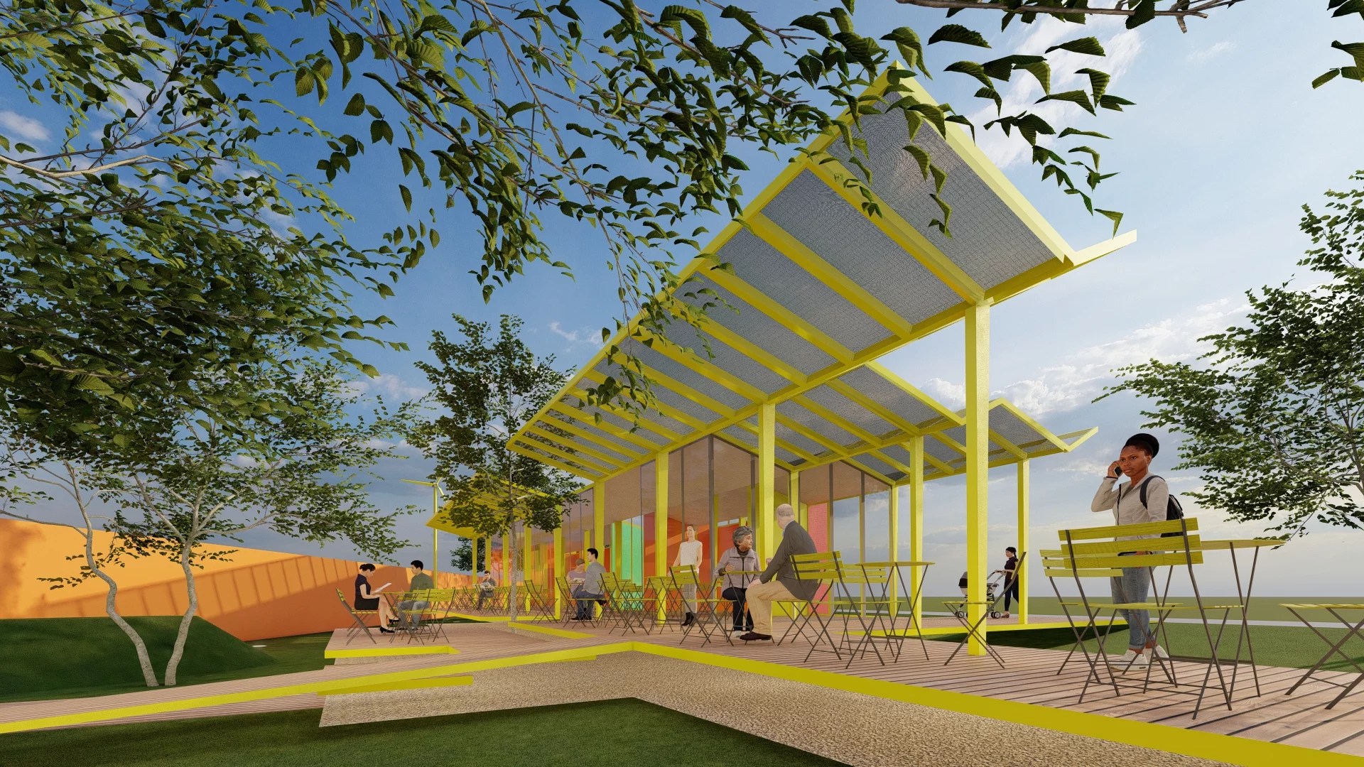 How is it possible for a cafe and a children’s playground to be integrated with the Science Center garden and the Peace Cord coastal arrangement?