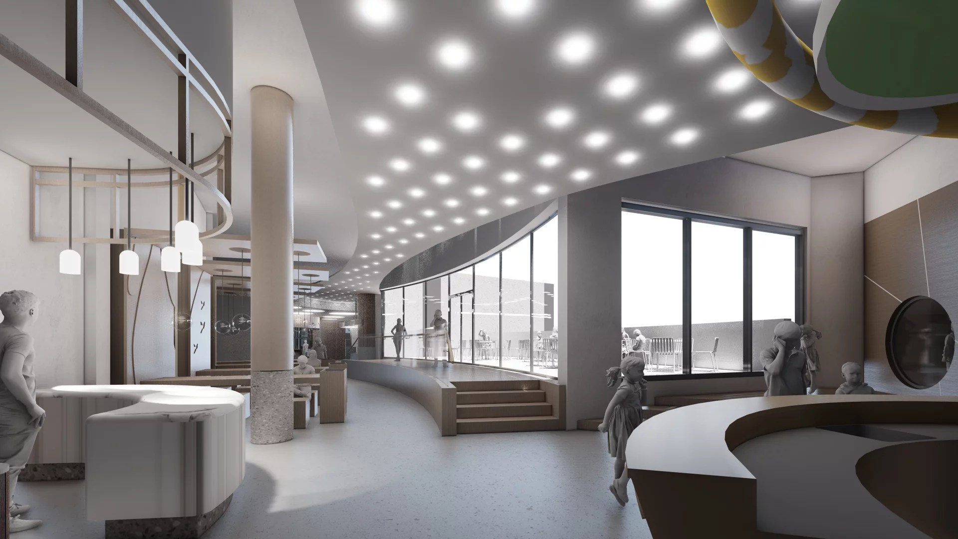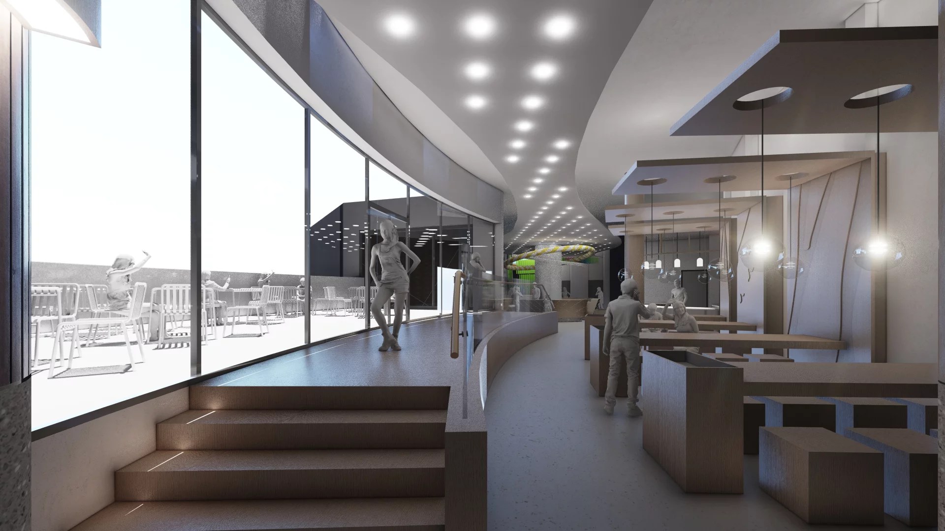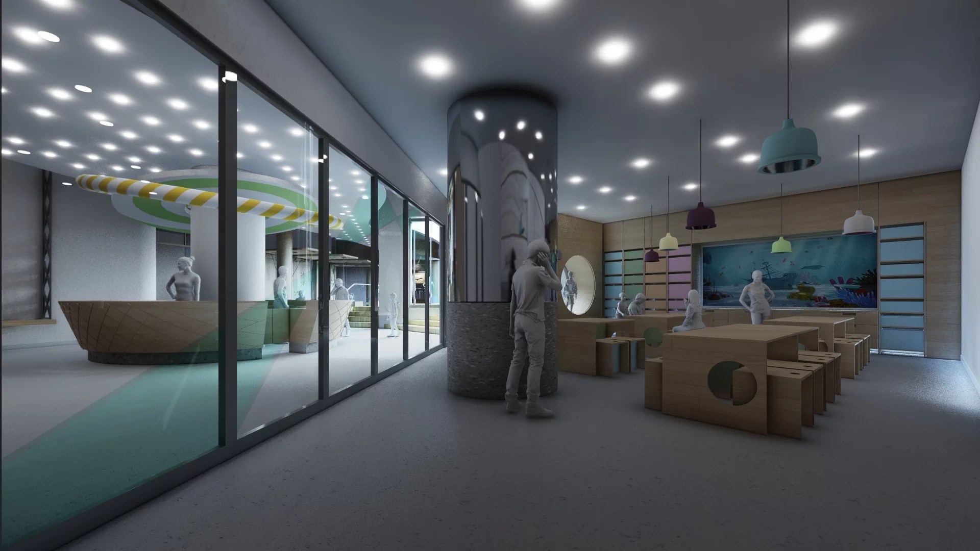 How can playgrounds be arranged for different age groups in an existing indoor space?