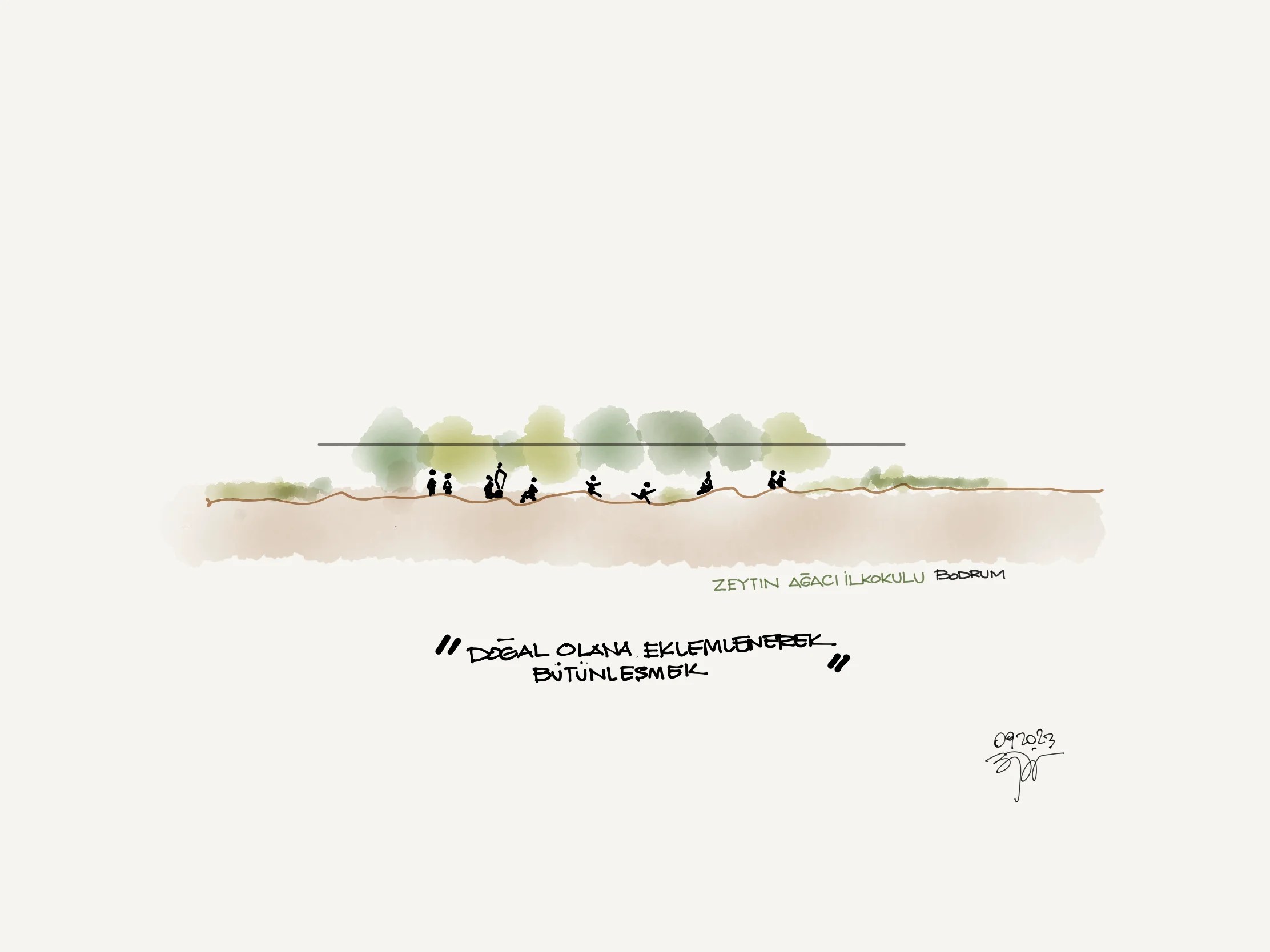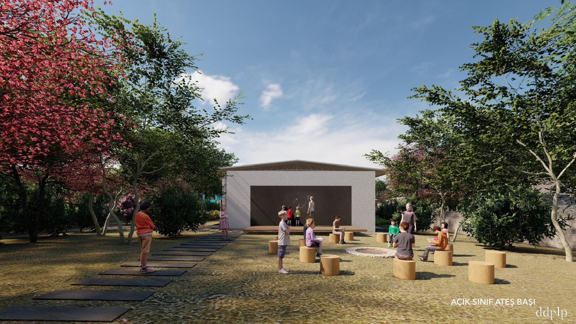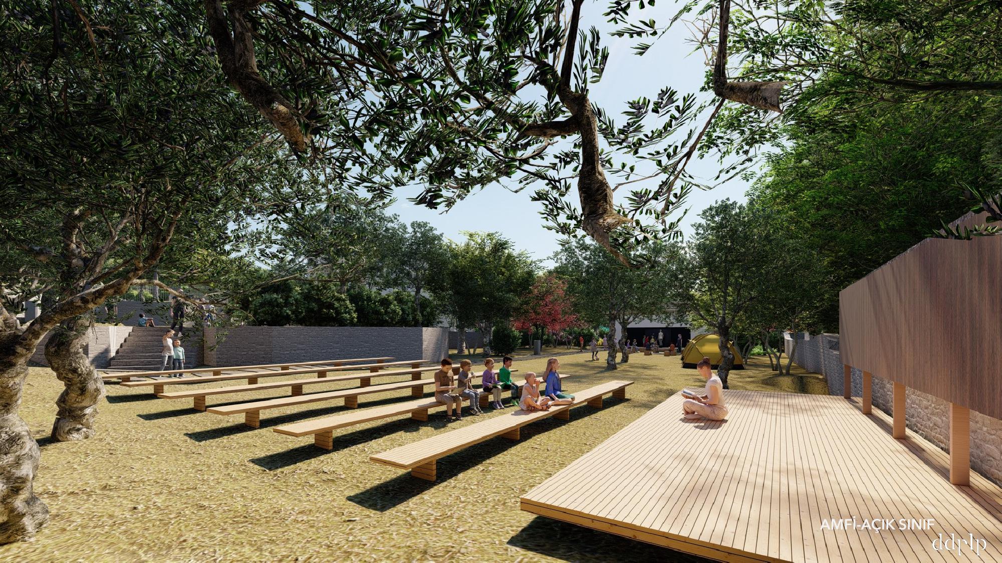 ”Yer’’in iklimi ve doğası ile bütünleşen, kapalı alanlarından öte açık alanlarının da eğitimin parçası olduğu bir okul nasıl mümkün olur? Mevcut yapı ve bahçesine minimum dokunuş ile eklenen ve bulunduğu fiziki ve doğal çevreyi bir eğitim alanına dönüştüren tasarımsal dokunuşların sınırı nerede olur?