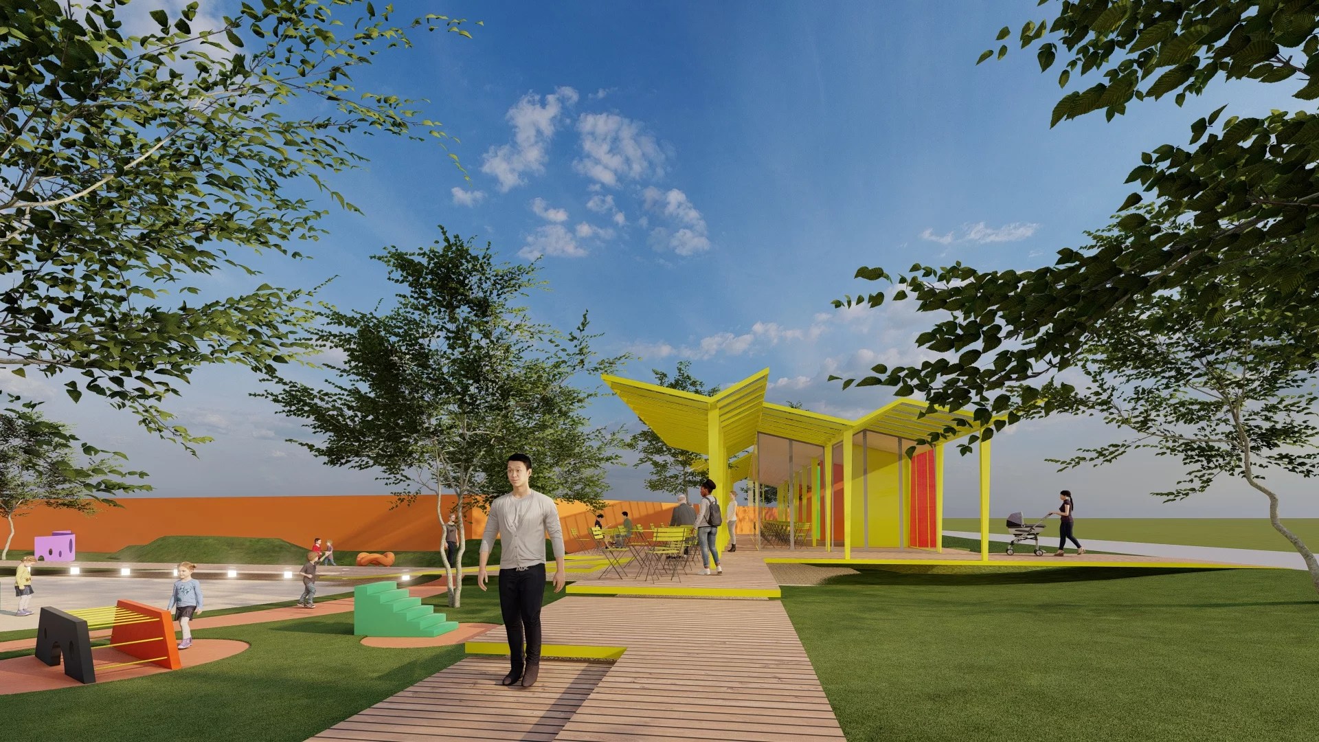 How is it possible for a cafe and a children’s playground to be integrated with the Science Center garden and the Peace Cord coastal arrangement?